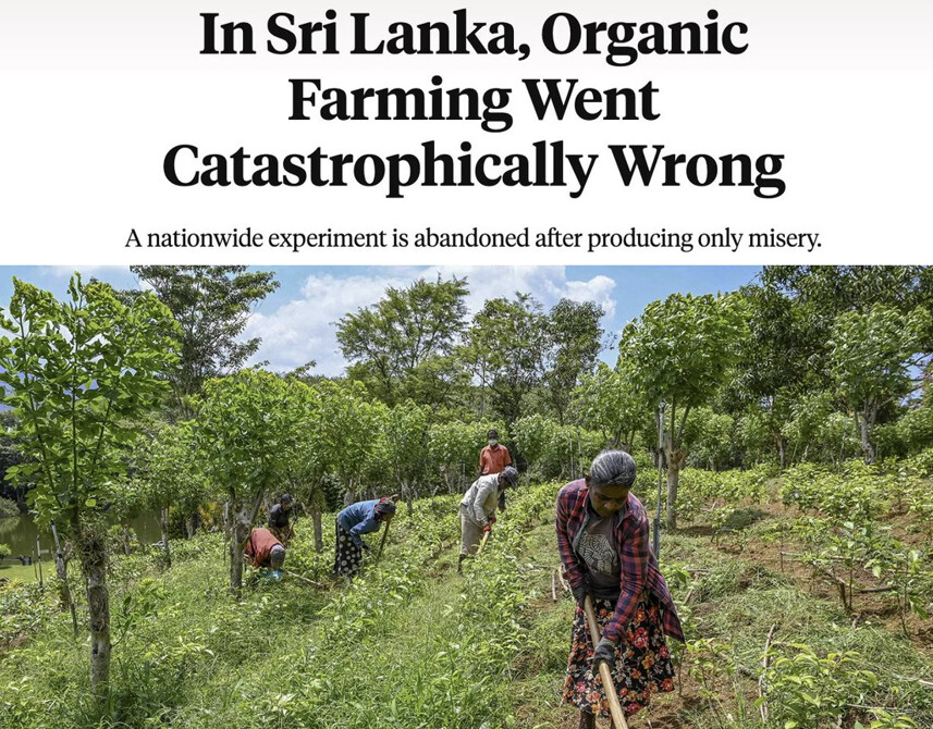 Sri Lanka voerde vorig jaar een kwaadaardig experiment uit op zijn burgers. Onder invloed van biologische voedsel- en anti-GGO-activisten verbood de regering de import van synthetische pesticiden en dwong een overgang van het land naar volledig biologische landbouw af, waardoor de overgrote meerderheid van de boeren geen toegang meer had tot de vitale middelen die ze gebruiken om de gewassen te verbouwen waar hun land van afhangt.